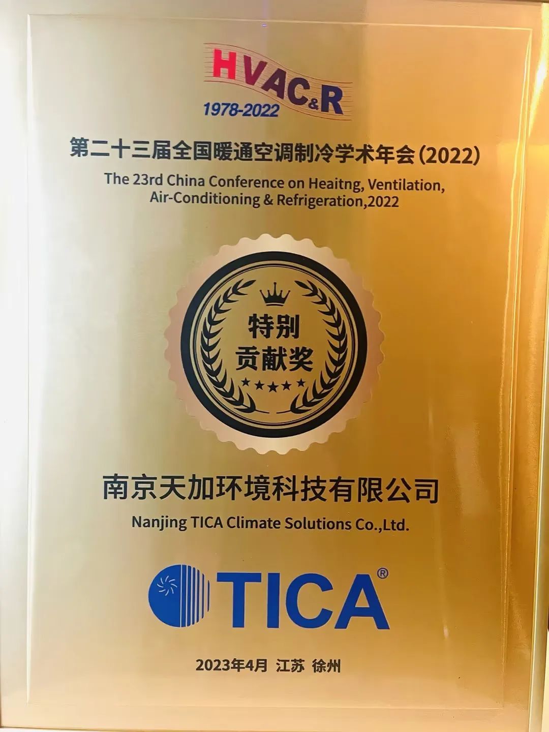 2023年4月25~27日,以“聚焦雙碳戰(zhàn)略,構(gòu)建暖通未來”為主題的第二十三屆全國暖通空調(diào)制冷學(xué)術(shù)年會在江蘇徐州舉行。南京天加環(huán)境科技有限公司受邀參會并發(fā)表主題演講,同時(shí)榮獲“特別貢獻(xiàn)獎”。